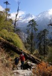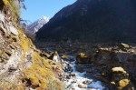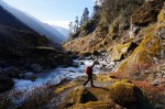 Dež je seveda že zvečer ponehal in zjutraj smo se zbudili v še en jasen in mrzel dan. Kar pozabil sem že kako daleč je do Thuli Kharke, toliko bolj, ker smo zdaj hodili navzgor! A še preden smo prišli do navzgor, nas je čakalo še precej gor in dol po zelenem gozdu. Res zelo lep gozd drugače, kmalu smo tudi prišli na sonce, le občasno je bilo zoprno zaradi blata. Cel kup strmih vzponov in spustov dokler se ni pot usmerila odločno in nepopustljivo navzgor.