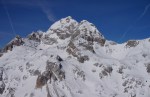 Šel sem zmerno zgodaj in upal, da bo močno sonce zmehčalo streho. Žal mu veter ni pustil in je bilo povsem trdo. Sem bil kar jezen sam nase, da sem tako zlahka pustil doma dereze, sploh ker sem se ves čas po malem bal, da bo tako. Pa se ne spomnim, da bi mi bil kdaj problem nesti tiste 1,5 kg več tudi če nisem rabil, še posebno na taki kratki turi. Kakorkoli, tudi s srenači je šlo, dereze bi bile pač bolj priporočljive.