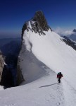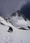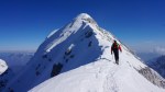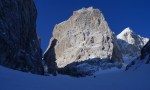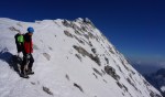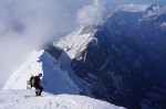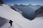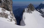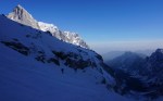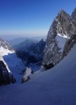 Ker sem bil ravno v zagonu, sem kar nadaljeval s solidnim tempom – prej kot bom nazaj z vrha in varno skozi Ozebnik, prej bom pomirjen. Prav veliko ljudi ni bilo videti. Na vstopu v Ozebnik sem nato srečal Jožeta s Štajerske, ki je imel isti cilj in sva šla skupaj. Nisem nič kompliciral in takoj zamenjal smuči za dereze, saj je šlo po lepih štapnah udobno in hitro vse do vrha, ko sva pokukala na sonce.