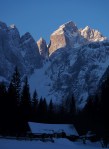 Da se gre na tako turo zgodaj je pač razumljivo samo po sebi. V Planici sem bil navdušen nad temperaturo -6°C in jasnim nebom, z obeti o mrazu tudi čez dan pa je kazalo, da bo šlo vse po načrtu. No, skoraj vse. Ko greš v Tamar, je nekaj najlepšega, če se znajdeš na jasi pred kočo v trenutku, ko sonce ožari vrh Jalovca. Jaz pa še nekje v gozdu, da sem le med vejami lovil poglede. Jao… Zato sem pospešil in za silo ujel nekaj tiste čarobne svetlobe.