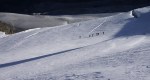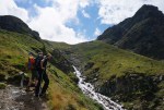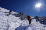 Zaradi mrzlega vetra se nismo prav dolgo zadrževali na vrhu, čakal nas je namreč še dolg sestop. Do koče je šlo hitro, po kratki pavzi pa je bil pred nami še najbolj mučen del ture – sestop v zimskih čevljih daleč v dolino. Skupaj smo naredili kar 2500 m spusta! K sreči se je sredi dneva spet pooblačilo, tako da vsaj vroče ni bilo.