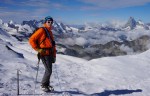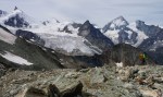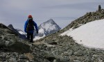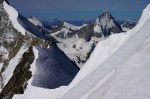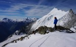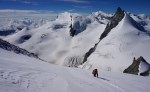 Za zadnji dan sva si izbrala krajšo turo, na švicarski način: z gondolo preskočiva dolg dostop in sestop ter si privoščiva le še razgleden vzpon na štiritisočak. Jaz sem se sicer zagledal v vzhodni greben, a za to bi morala prespati v koči, ki pa je bila seveda že zdavnaj zasedena.