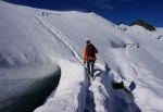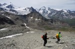 Zinal leži na višini 1680 m, tako da nas je čakal dolg vzpon do koče Tracuit na 3256 m. V Švici je res hecno, ker smo še zjutraj govorili nemško, potem pa je v naslednji dolini kar naenkrat vse v Francoščini. Ravno po tem grebenu poteka meja med nemškim in francoskim delom Švice, tako da je na eni strani ledenik Turtmanngletscher, tik nad njim pa Cabane de Tracuit. Smo pač buon-jourali, pivo je biere namesto bier, drugih bistvenih razlik pa ni.