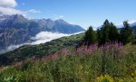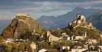 Sredi dneva sem se nato vrnil v dolino in se zapeljal v mesto Sion, ki je prestolnica kantona Valais/Wallis. Srednjeveški del mesta je zelo lep s svojim labirintom ozkih uličic, nad njim pa se na strmem hribu bohotita dve utrdbi, ki obvladujeta celo dolino: Basilique de Valère in Château de Tourbillon (aha, tu smo spet v francoskem delu, čeprav še vedno v isti dolini; ne vem kje je meja, ampak na neki točki so me spet vsi buon-jourali). Edina napaka je bila, da nisem vzel fotoaparata, češ, saj bo vsak čas začel dež in ne bo nič takega za slikati. Pa sem imel na vrhu celo nekaj malega sonca… Ker je vzpona za skoraj celo Šmarno, se mi ni dalo nazaj, zato tu le ena sposojena slika z interneta za vtis.