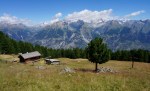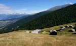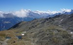 Po zajtrku sem se ponovno odpravil na pot. Najprej nazaj na Dreizehntenhorn in naprej po grebenu, ki sicer ni več markiran, a tudi ne zahteven. Sledijo si vrhovi Schwarzi Blatte (2975 m), Ginalshorn (3027 m), Alstafelhorn (2839 m), Signalhorn (2911 m) in končno še Ergischalphorn (2851 m). Na zadnja dva naj bi peljala markirana pot, vendar je ni bilo videti, tako da me je na poti navzdol čakalo nekaj iskanja prehodov in sledenja občasni stezici. Malo nad opuščeno planino Obri Eischollalp so se končno pojavile obledele markacije ob zaraščeni stezici, vzdušje je bilo skorajda nekoliko trentarsko. No, na spodnji planini Undri Eischollalp sem bil nazaj v civiliziranih krajih in me je čakalo le še dolgo in nebodigatreba prečenje po cesti do izhodišča.