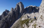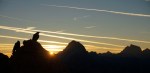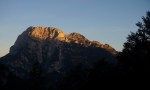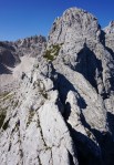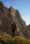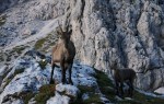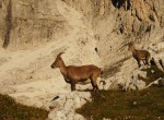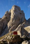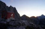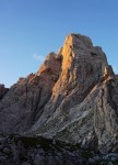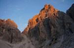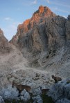 Še pred soncem smo bili spet zunaj in v družbi kozorogov in kavk pričakali rojstvo dneva. Anja in Katja sta še malo zabušavali, kasneje pa sta prehodili Pot stoletnice po grebenu Malih belih špic nad bivakom. Z Mihatom pa sva se odpravila v smer Ive-Piemontese (IV, 250 m) v Mali Lojtrici (Cima Piccolla della Scala, 2099 m). Dostop je več kot udoben: 10 minut spusta in sva pod steno! Skoraj še preveč udoben, saj se nisva niti dobro zbudila, ko je šlo že zares.
