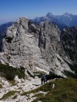 Sestopila sva po normali smeri, ki je zahtevnejša (II) le v zgornjem delu. Do škrbine sva se spustila po vrvi, potem pa sledeč možicem in občasni stezici naokoli do izrazite rampe in po njej spet pod steno. Tam smo se spet dobili vsi štirje in sestopili v vročo dolino. Vzeli smo si čas za skok v jezero in pivo, saj lahko druge obveznosti vedno vsaj toliko počakajo. Lep vikend, bolj kratek, a polno izkoriščen.
