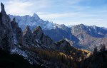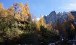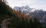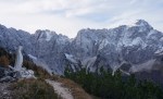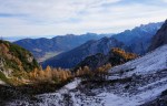 Tudi tokrat sem bil ob sončnem vzhodu na Zelencih, od koder sem si ogledal cilj. Škoda za tisto jutranjo visoko oblačnost, pa vseeno je bilo lepo kot vedno. Nato sem se zapeljal okoli Ponc in pri spodnjem jezeru parkiral. Pot št. 512 čez Švabešco so obnovili in je sedaj normalno prehodna. Najprej se vzpne skozi gozd, nato preči visoko po pobočju, ves čas ob enkratnih razgledih, do skrite dolinice, ki je obdana z divjimi špicami in strašljivimi grebeni. Pot pa se vije skozi idiličen macesnov gozd, poln tišine in spokojnosti.