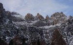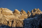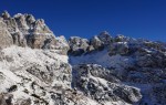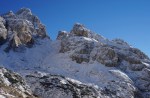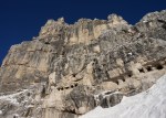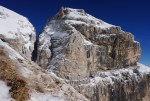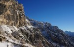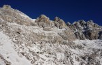 Do koče Corsi nisem šel po direktni poti, ki mi že v kopnem ni všeč, ampak sem šel malo naokoli in po udobni polici pod Beljaškim stolpom. Stena zgoraj je bila kopna, le nekaj smrkljev je grozilo, da bodo v toplem soncu trdo pljuvali po meni, če se ne podvizam mimo.