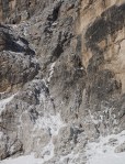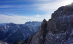 Od koče naprej ni hodil še nihče, ali pa je stopinje odneslo v večnost. Razmere so bile mešane: spihano do golega, zameti, skorja, ki je včasih držala, včasih ne, kopne skale, pogosto prevlečene z ledeno oblogo. Po drugi strani pa so bile na strmejših delih jeklenice večinoma zunaj. Nad zahtevnejšim delom sledi “samo” še tisto neskončno pobočje do vrha.