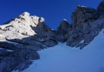 Od bivaka sem zavil v Findeneggov ozebnik, kjer je bila končno – zima! V resnici je tudi tu snega manj kot sem pričakoval, tako da brez nekaj praskanja po skali ni šlo. A kljub temu je šlo dovolj udobno do vrha. Tam sem se grel na soncu in požiral širne razglede, da se mi ni nikamor mudilo.
