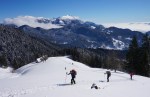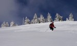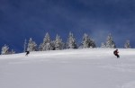 Precej obiskovalcev je bilo ta dan gor, a prostora je bilo dovolj za vse. Zato je bila še toliko bolj škoda, da smuka ni bila tako uživaška, saj je bil sneg že res težek. In kljub obilni pošiljki ga je ponekod že primanjkovalo; podlage pač ni. In popoldne je bilo na izhodišču snega že občutno manj kot zjutraj. Tako smo bili na koncu vendarle zadovoljni, da smo ujeli priložnost; zdaj pa upamo še na kakšno ohladitev…