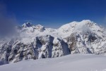 Kljub ne posebno zgodnji uri smo bili gor še pred množicami in nekaj svežega snega na precej podlage je poskrbelo za tisto pravo pokljuško idilo. Mraz in nekaj oblakov pa so poskrbeli, da je bila tudi smuka super, čeravno spet nekoliko prekratka…