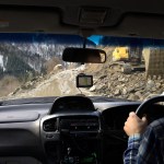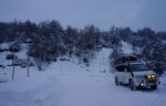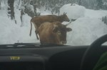 Do mesta Zugdidi pot poteka po ravnini, a kljub temu je šlo počasi zaradi slabe ceste (nekaj malega je avtoceste, nekaj jo je še v gradnji), od tam pa sledi 140 km gorske ceste do Mestie. Ozka in ovinkasta cesta je bila pogosto ledena, v predorih so s stropa grozile ogromne ledene sveče, po tleh luknje in kosi ledu, skale in sneg s pobočij… Skratka, napredovali smo izredno počasi. Višje se dolina odpre in cesta vodi skozi vrsto manjših vasi, kjer se sprehajajo tudi krave, prašiči in psi, ki zahtevajo še nekaj dodatnega slaloma. Cesta je sicer plužena, a ne do tal, tako da brez štirikolesnega pogona ne gre. Skupno trajanje poti iz Tbilisija do Mestie: 11 ur! Nazaj grede smo bili le kakšno uro hitrejši, saj je bil zaradi odjuge spodnji odsek ceste kopen.