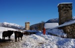 Naš cilj je bil kraj Mestia – »glavna vas« pokrajine Gornji Svaneti v osrčju Kavkaza. Poleti menda čedalje bolj priljubljeno izhodišče za pohodništvo, kolesarjenje ali plezanje na okoliške velikane. Pozimi pa je zgodba (vsaj za enkrat) precej drugačna. V resnici je Svaneti nekaj posebnega predvsem zaradi svoje odročnosti in težke dostopnosti; tu občasno še doživiš občutek potovanja v času. Šele pred nekaj leti je bila edina cesta asfaltirana, zgrajeno pa je bilo tudi manjše letališče, ki seveda močno olajša dostop. Težava je v tem, da so le trije leti na teden in to z majhnimi letali, kjer je omejitev 15 kg prtljage na osebo. Z vso smučarsko opremo premalo za nas, bili smo pa prepozni, da bi kupili več kart. Poleg tega seveda v primeru slabega vremena, ki je pozimi dokaj pogosto, letalo ostane na tleh.