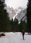 Zgoraj je novi sneg zoprno zaviral, da je šlo prav čudno, nižje je bilo potem dobro in čedalje bolje. V gozdu nad kočo je snega že grozno malo, a še dovolj za zvezno smuko. Od koče pa po tekaški, kjer je že več kopnin (ena daljša in več krajših). Pripeljala sva se sicer do vsega 100 m od avta, čeprav pri toliko prekinitvah to ni tako udobno kot se sliši.
