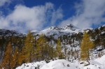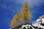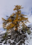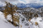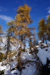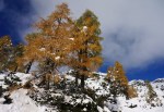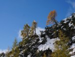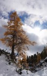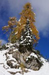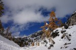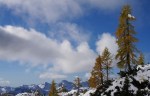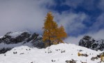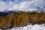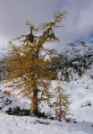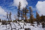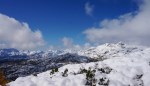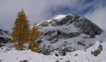 Snega je bilo nekje do 20 cm, dovolj, da so bili macesni pošteno presenečeni. Nič čudnega, ko pa so bili še prejšnji vikend skoraj povsem zeleni. Tako so poskrbeli za prav zanimive kontraste. Škoda le, da se je že kmalu pooblačilo in s Krede sem imel precej omejene razglede. Kljub temu sem prečil do Slatne, naprej proti Voglom pa ni bilo smiselno. Rajši sem sestopil do doline Za Kopico in nazaj do Dednega polja.