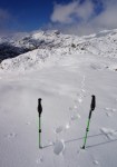 S planine Viševnik so vodile sledi tudi proti Pršivcu, kjer še nisem bil, zato je bila odločitev samoumevna. Žal so se sledi že kmalu končale, a sem vztrajal in brez težav sledil poti do vrha. Kljub jutranjemu mrazu, je sonce dobro grelo in na poti nazaj me je sneg z dreves pošteno stuširal. Kot kaže, bo zime hitro konec, še toliko bolje, da sem izkoristil zelo lep dan.
