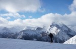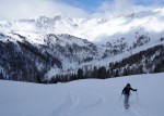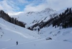 Čeprav smo že pred nekaj dnevi videli, da je treba na severno stran Tur, smo izbrali bližjo varianto v dolini Zederhaus. Sprva nam je bilo kar malo žal, vtis na izhodišču je bil: veliko ljudi in malo snega. Po zložnem vzponu do planine Aigneralm je večina zavila levo, mi pa desno. Malo višje nam je bilo spet žal, saj je na drugi strani doline izgledalo lepše zasneženo, pri nas pa je bilo snega vse manj in manj, na vrhu je bilo spihano do golega. Kje bomo sploh smučali?!