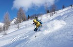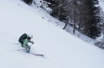 Prav dolgo se s tem niti nismo ukvarjali, saj je bil resen mraz in smo hitro odsmučali. Po zgornjih nekaj travnatih zavojih smo se nenadoma znašli sredi krasnega pobočja polnega pršiča! Hej, tole pa ni slabo! Uau, pravzaprav je naravnost super! Smo vendarle dobili kar smo iskali. Le prehitro je bilo konec, kot ponavadi.