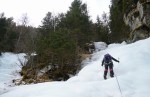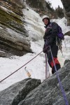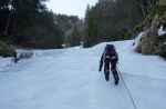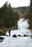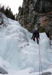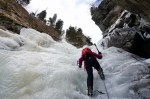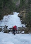 Javila sta se namreč Zoran in Iva in prišla v petek zvečer na pico in pivo, v soboto pa smo se navsezgodaj zapeljali v dolino Malte, kjer naj bi bile še vedno dobre razmere. Izbrali smo si smer Strannerbach (WI3, 500 m), ki je pravzaprav eden od mnogih potokov, ki se stekajo po strmih pobočjih nad dolino. Večinoma gre za lažje plezanje, z nekaj lepimi skoki, ravno prav tudi za začetnika, kot sem jaz. Tudi razmere so bile dobre, kljub dokaj visokim temperaturam, sploh v spodnjem delu, zgoraj je bilo pa že čedalje več vode. Razen tega pa precej nenavadno vzdušje, saj je bilo izven potoka vse zeleno.