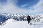 Šli smo mimo koče Südwiener hütte, ki stoji na še kar čudoviti lokaciji in naprej na hišni vrh Spirzinger. Malo nas je skrbelo, da bo sonce zgoraj hitro ojužilo novi sneg, a je ostal suh in navzdol je šlo prav super! Tudi ljudi ni bilo veliko, saj smo bili med zgodnjimi – tako smo tudi idealno zadeli vremensko okno; ko smo prismučali v dolino, se je že pooblačilo in obeta se nova pošiljka…