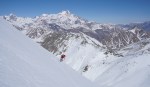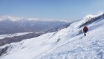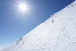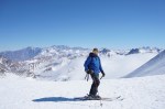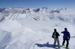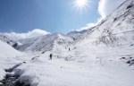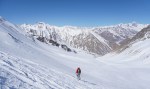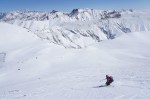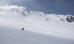 Najboljše razmere smo odkrili v okolici smučišča, zato smo se tam tudi največ zadrževali. Je bilo pač udobneje se zapeljati z žičnico skoraj 3300 m visoko, od koder je bilo več zanimivih možnosti. Sploh ker stane dnevna smučarska karta vsega 14€ in nam je ni bilo žal tudi za samo enkratno vožnjo do vrha (ki v resnici traja skoraj celo uro s tistimi počasnimi žičnicami). Na severni strani smo imeli na voljo širne planjave še suhega snega, prismučati pa se je dalo vse do ceste v dolini na drugi strani prelaza, od koder smo se s taksijem zapeljali nazaj. Podobno turo v več različicah (smučanje z vrha, s sedla, z vmesnim vzponom in spustom po drugi dolini) smo večkrat ponovili in vedno dobro smučali. Glede na slabe razmere je bil končni izkupiček torej vendarle pozitiven.