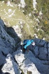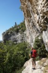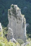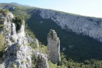 Presenetljivo ni bilo dopoldne nobenih drugih plezalcev, šele kasneje je prišlo nekaj Avstrijcev in nekaj Slovencev, tako da sva si lahko poljubno izbirala smeri. Jaz letos nisem ravno v formi, a sva kljub temu kar uspešno splezala več lepih smeri. Za konec sva v dveh raztežajih splezala še na največji stolp – Veliki Toranj, kar je sploh posebno doživetje. Na vrhu je dovolj prostora in tudi razgled je enkraten. Po tem sva naredila še en krog, kjer mi je lokalni poznavalec razkazal še druge dele kanjona.