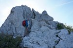 Midva sva že kmalu zapustila mulatjero in se vzpela na vrh po nazobčanem grebenu s čvrsto skalo. Večinoma gre za lahkotno poplezavanje z nekaj mesti III in celo kakšnim zračnim prehodom. Skratka, čisto hribovska tura, čeprav je vrh visok le 838 m. To je tudi edina slaba stran grebena, saj ga je kar prehitro konec.