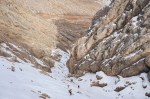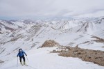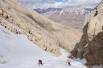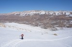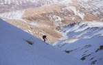 Po dolgem vzponu smo končno dosegli nek vrh v grebenu, kjer smo zaključili, do glavnega vrha je vodil še zelo razvlečen greben (razsežnosti so tam večje, kot smo jih vajeni). Spustili smo se po zares čudovitem kuloarju naravnost navzdol, kjer pa je bila na žalost skorja. Še pred tem je izginil D., ki je šel kar po svoje po grebenu nekam naprej in ko smo se spustili za rob, se je že vračal nazaj k nam, potem pa odsmučal po smeri vzpona. Ker nismo vedeli kam je šel, smo ga še dolgo čakali in ga šli navzgor iskat, on pa nas je medtem čakal v vasi, kamor smo prismučali že v temi… Res pametno, takole sredi Irana kar tavati po svoje! No, k sreči se je vse dobro izšlo in vsaj ostali smo se posledično bolj zbližali s Hamedom, ki je bil takrat močno prestrašen. Na koncu je bila tudi to poučna izkušnja – izbira ekipe in predvsem komunikacija sta zelo pomembna!