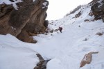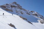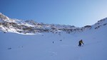 Ta dan smo se napotili v presenetljivo bogato zasneženo dolinico in se najprej povzpeli na sedlo, s katerega se je odprl lep pogled na drugo stran – hitro smo bili dogovorjeni kam gremo naslednji dan! Smuka s sedla nazaj pomladansko uživaška (skorje že ni bilo več) in malo nižje smo se ponovno povzpeli po strmem pobočju do grebena na drugi strani. Tudi tu smuka odlična in vse do doline smo privijugali z nasmeški na obrazih.