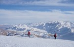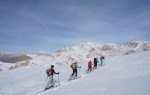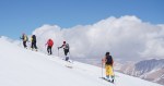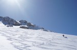 Pogled na borno zasnežena pobočja ni bil obetaven, a prednost vodenih tur se je pokazala v poznavanju terenov, tako da smo naslednjih pet dni vsakič našli dovolj zasnežene kotičke, da smo prismučali do ceste. Že prvi dan smo z navdušenjem ugotovili, da so bile osojne lege spodobno zasnežene, medtem ko smo na drugi strani doline gledali rjave tritisočake…