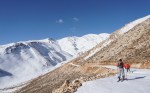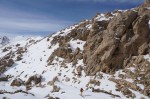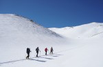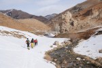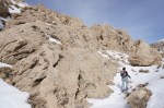 S Hamedom smo se zapeljali v bližnjo vasico in se po dolgi, ravno dovolj zasneženi dolini le zložno vzpenjali. Počasi so se okoli nas začela odpirati enkratna pobočja in kar hudo nam je bilo ob tako skromni snežni odeji. Med vzponom se je pokazala pomanjkljiva izkušenost vodnika (v smislu izbire smeri vzpona) in slaba disciplina klientov (pač nismo navajeni hoje z vodnikom), tako da smo šli občasno kar malo po svoje.