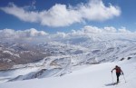 Tokratna tura je bila predvsem dolgo popotovanje z dolgim prečenjem pod žgočim soncem, z vmesnim spustom in mučnim vzponom do izredno razglednega vrha. Ker je imel Hamid celo ekipo (z lastnimi kuharji, vodniki in vozniki – večina je bila vse to hkrati), smo si lahko privoščili ture s poljubnimi izhodišči in cilji. Tako smo z vrha smučali naravnost navzdol po neskončnem grabnu, ki se je spodaj zaprl v slikovit kanjon in nas izpljunil v majhni vasici tik pod cesto v dolini. Krasna tura z enkratnimi tereni. Žal se je zaradi nočnega vetra naredila skorja, tako da je bila smuka, razen v zgornjem delu, bolj žalostna.