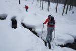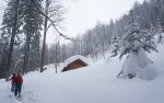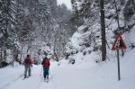 Slabo vreme in preveč snega za visokogorje, bil je krasen dan! 🙂 Z Marušo in Slavi smo se podali čez mejo v Medji dol nad Podrožco. Izhodišče je precej nizko in po cesti po dnu doline se kar vleče preden se začne pot vzpenjati skozi gozd proti planini Rožca.