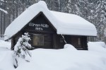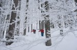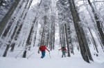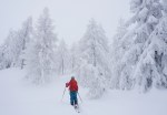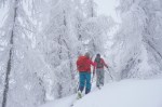 Z vrha ni bilo druge kot po smeri vzpona do gozda, ki je zelo lepo smučljiv, sploh v takšnih super razmerah. Čeprav je bilo zaradi megle tudi v gozdu prav temačno. Nižje je nekaj več goščave, a pri toliko snega kar gre, pa tudi na koncu po cesti je bilo čisto fajn. Prava tura za takšne razmere, oziroma prave razmere za takšno turo.