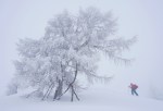 Cel svet je bil globoko zasnežen, a kot da ne bi bilo dovolj beline, nas je višje objela še megla. K sreči vsaj ni pihalo in tudi polarni mraz še ni pritisnil. Tako smo vztrajali navzgor, ne da bi res vedeli kje smo, dokler nismo prišli do križa. Koprivnjak torej. Fino. In smo šli dol.