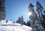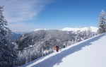 Somišljenikov je bilo danes kar precej, nihče ni bil videti slabe volje. Z vrha smo kar takoj odsmučali do planine Javornik; na čistinah je bilo že nekaj skorje zaradi vetra, a ob smrekah še več kot dovolj pršiča. Žal je zelo hitro minilo, hitro pa smo bili spet nazaj na vrhu. Tokrat smo smučali bolj proti jugozahodu, kjer je bilo že bolj zvoženo, ampak snega je še dovolj za vse. Tudi nižje skozi gozd smo iskali svoje prehode, saj je šlo povsod odlično, da je kar prehitro minilo… Še bi, še.
