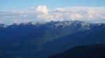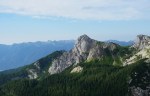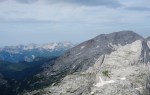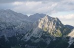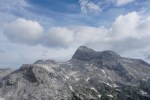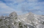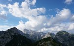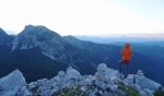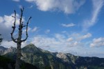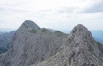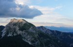 Za začetek me je čakalo kar nekaj spusta na planino Pod Mišelj vrhom, a sem izgubo višine nadoknadil z obnovo zaloge vode. S planine takoj strmo navzgor na Koštrunovec, v tem času se je že pooblačilo, česar tudi ni bilo v načrtu. S Koštrunovca se v nebo dvigne impozantni Mišelj vrh (čeprav po imenu sodeč tega ni slutiti). Od blizu sicer ni tako zahtevno kot izgleda in kmalu sem bil na vrhu.
