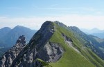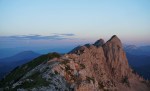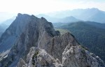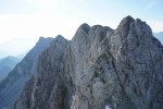 Zjutraj je sonce spet zamujalo preden se je pokazalo med oblaki, jaz pa sem še malo počakal, da bi posušilo mokre trave. Za začetek me je namreč čakal najbolj našpičen del grebena, ki mi je bil že poznan, a še vedno prav nič dolgočasen. S Košutnikovega turna se odpre pogled po grebenu daleč tja proti zahodu, zato se nisem preveč obotavljal.