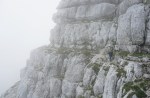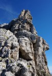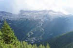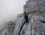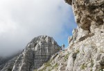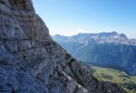 Kmalu sva stopila na pot Ceria Merlone, ki preči po čudovito zloženih naravnih policah Špic v Planji in Nižnjih vrhov ter se spusti do Škrbine v Krni dol (Forca de la Val). Tam naju je objela megla, ki je posedala na grebenu in naju prikrajšala za razglede. Pa se nisva pretirano jezila, saj sva vedela, da naju ti čakajo še ves naslednji dan.