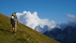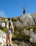 Tokrat pa sva se z Maretom pripeljala na Pecol šele v soboto popoldne in se odpravila po cesti do planine Zgornji Krni dol. Markirana pot nadaljuje okoli grebena do Škrbine prednje Špranje, midva pa sva rajši zagrizla v strm breg po udobno speljani mulatjeri, ki naju je privedla do Vrha Krnega dola. Tam so vse naokoli posedali rogati domačini, ki se niso pustili motiti in so naju opazovali z mešanico radovednosti in brezbrižnosti.