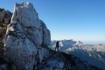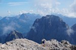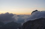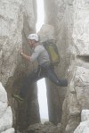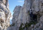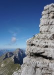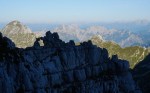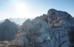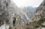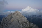 Kljub mrazu pa poletna sezona še traja, čeprav sem po dveh deževnih vikendih na to kar malce pozabil. To je seveda pomenilo precejšnjo gnečo v bivaku, kjer je osem postelj, nas pa je bilo še enkrat toliko, poleg naju sami Italijani. Sicer sva na prečenju srečala le malo ljudi, toliko več jih je bilo le na Montažu in Špiku Hude police.