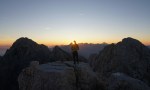 Zjutraj smo skupaj z lokalnimi kozorogi pričakali sonce in pozajtrkovali z razgledom. Kar v redu začetek dneva. Kmalu sva se odpravila naprej proti zahodu. Sprva po grebenu, nato pa sledi strm spust v Škrbino nad Tratico. Naprej vodi travnata pot pod Špikom nad Tratico, ki se priključi mulatjeri na Špik Hude police. Tam je tudi konec poti Ceria Merlone, midva sva mimogrede skočila še na bližnji vrh, kjer je bilo polno Slovencev, tako da sva dobila tudi domačo potico!