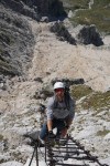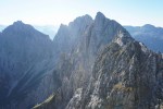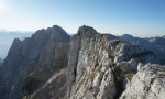 Še bolj v duhu prečenja je sestop (ali vzpon) po Findeneggu. Jaz običajno delam to v smeri Z-V, torej začnem z Findeneggom. Ni težek, malo potipaš dvojko, le precej naloženega kamenja je.