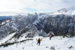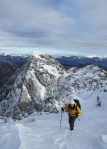Do Debele peči vodi lepo uhojena gaz, malo pod vrhom nas je že pozdravilo sonce, ki je razprlo oblake. Vreme je bilo sploh prav prijazno – dokaj toplo in brez vetra. Nadaljevali smo po gazi čez Brda, na drugi strani je bila gaz precej bolj skromna in smo se kratek čas prebijali skozi napol pokrito ruševje. Naprej je šlo lažje po grebenu čez Lipanski vrh in na Mrežce, na zahtevnejših mestih je bila jeklenica nad snegom in smo jih zmogli brez težav. Z Mrežc smo se spustili po spet dobro uhojeni gazi, čeprav se je sestop vlekel precej bolj kot običajno (na smučeh seveda). Sedaj že čedalje bolj nestrpno pričakujemo novo pošiljko snega, a do takrat je pač treba izkoristiti kar je na voljo. In tudi to ni slabo.