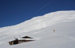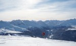 Najprej smo odsmučali v senčno dolino po krasnem pršiču kakšnih 300 m nižje, nato pa ponovno navzgor. Le en smučar se je s strani Lenzerheideja povzpel do rame v grebenu in odsmučal na drugo stran. Mi smo tako sami dosegli vrh in tam nekaj časa uživali v razgledih. V zgornjem delu je bil sneg že delno predelan in bolj južen, ampak je vseeno omogočal uživaško zavijanje po lepem pobočju. Nižje smo prešli v senco in po pršiču se je zdelo, da smučamo po zraku.