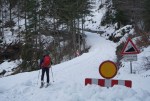 S Slavi sva odsmučala s sedla okoli 12h, morala bi celi 2 uri prej. Prva strmina je bila sploh neugodna, smučljiv je samo ozek in strm prehod, nižje je bilo potem bolje, a daleč od dobro: na soncu gnoj, v senci skorja. Pa tako lepo in dolgo smučišče! Navzdol sva sledila Maretu v gozd, kjer je bilo snega dovolj vse do ceste, čeprav kakšnih užitkov tudi tu ni bilo. In za konec je bila še cesta precej razrita. Skratka, kar naporno. Tako je to: lepa tura v lepem dnevu, z veliko smučanja – a v slabih razmerah je splošni vtis malce grenak. Očitno bo v letošnji zimi treba iskati drugačne možnosti.