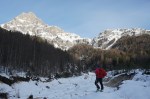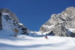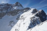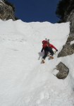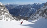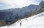 Cesta je splužena do Peričnika in zjutraj je bilo za silo hladno. Prva napaka je bila, da nismo bili pretirano zgodnji, kljub vroči napovedi. Nekaj časa po cesti, nato pa navzgor – Mare pametno po gozdu, midva s Slavi pa kar po Velikem Črlovcu, še sam ne vem zakaj. To res ni bila dobra ideja, čeprav v spodnjem delu je šlo brez težav, višje je bil cel graben poln plazovine, vmes sva morala preplezati strm skok, nato sva končno dosegla prečno pot. Za popestritev v redu, v resnici sva samo po nepotrebnem izgubljala čas in energijo.