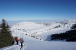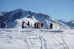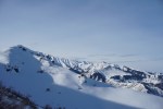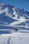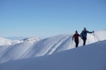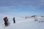 Po kratkem obroku (za nas pravzaprav zajtrku) smo se odpravili na prvo turo. Prvi pogled naokoli nas ni preveč navdušil, saj je bilo povsod videti nekakšno travo, nekateri vrhovi so bili povsem spihani. A smo kmalu ugotovili, da je tista trava v resnici grmičevje, ki sega do 2 metra visoko in da je snega dejansko veliko. Meni je bilo kljub temu malce moteče, saj daje vtis bolj klavrne zime.